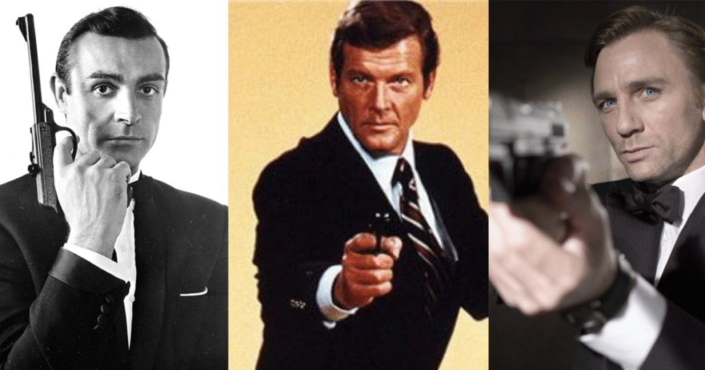 Connery definió al Bond original: elegante, cínico y peligroso. Roger Moore llevó el personaje hacia un tono más ligero y autoparódico, con excesos que hoy pueden resultar difíciles de digerir. Timothy Dalton apostó por un Bond más oscuro y cercano a las novelas. Pierce Brosnan combinó clasicismo y espectáculo noventoso, mientras que Daniel Craig reinventó al agente con una impronta física, emocional y crepuscular.