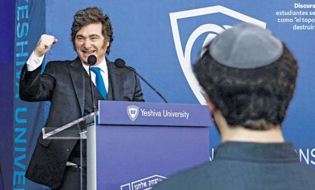 El mandatario habló durante más de una hora en el auditorio principal de esa casa de estudios y recibió reiteradas ovaciones del público. En ese contexto, se definió como “el presidente más sionista del mundo” y reiteró su alineamiento geopolítico con Washington y Jerusalén. Consultado sobre la guerra en Medio Oriente, sostuvo que Irán es un enemigo histórico de la Argentina y recordó los atentados contra la AMIA y la Embajada de Israel en Buenos Aires.