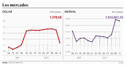 El dólar cerró en $1.375 tras la noticia del apoyo estadounidense, mientras las acciones argentinas en Wall Street registraron subas de hasta 20,5%. El presidente Javier Milei afirmó que quienes apostaron contra el peso “están teniendo pérdidas enormes” y destacó la entrada masiva de divisas esperada.